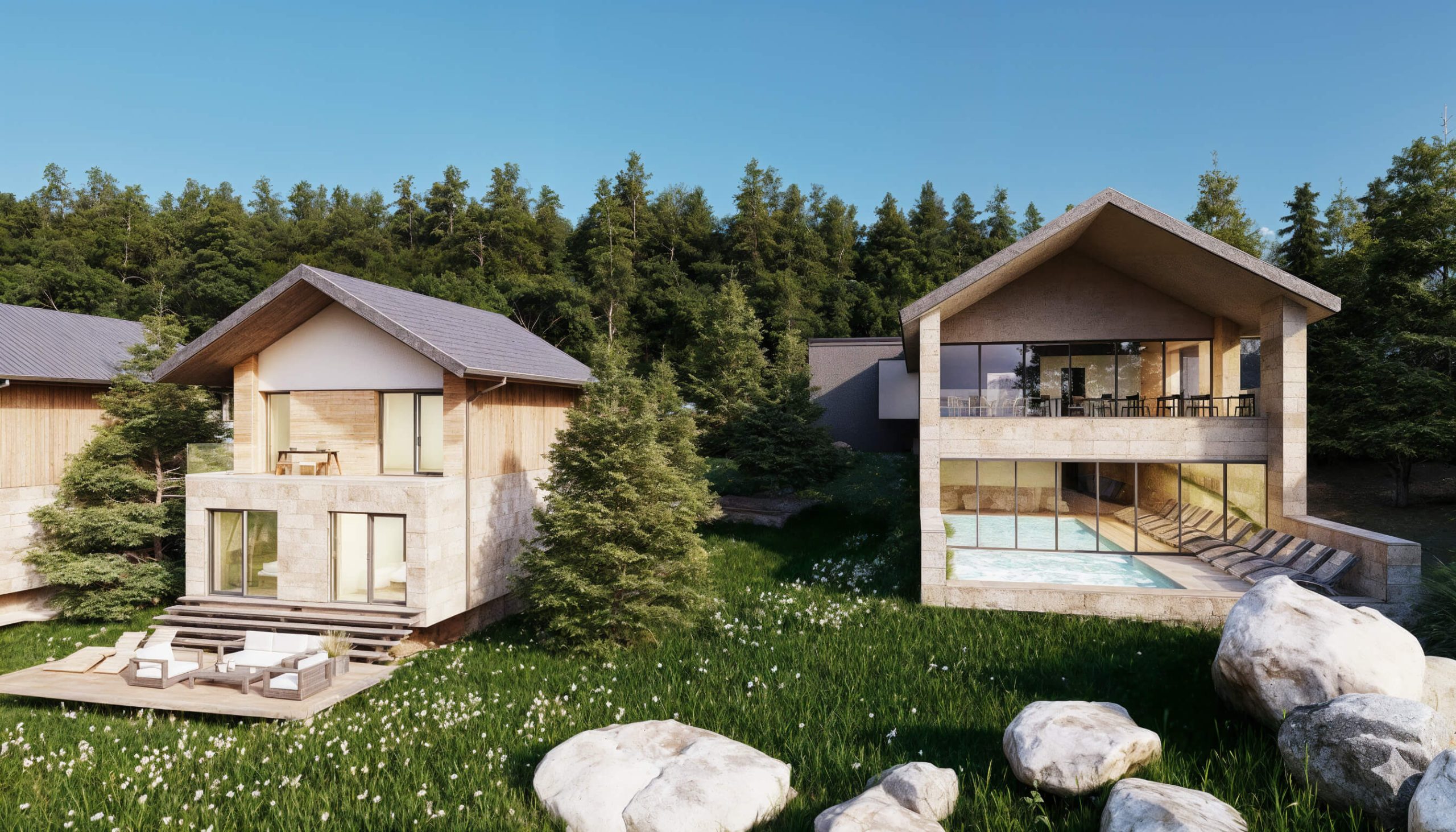 The project is designed to function both as a retreat destination and as an investment in sustainable mountain tourism, with a focus on guest comfort and sensitive integration into the landscape.